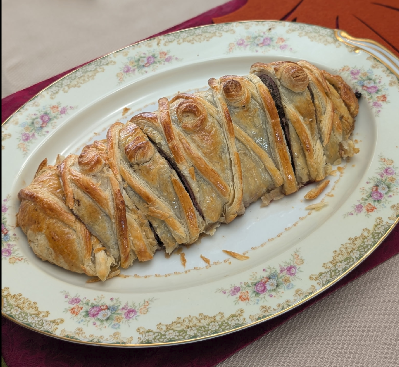 - Trader Joe offers an excellent puff pastry. If you use this brand, note that the 1.2 lb box (sufficient for this recipe) contains two sheets. Use one for the bottom and the other for the top, sealing them with egg wash and the tines of a fork